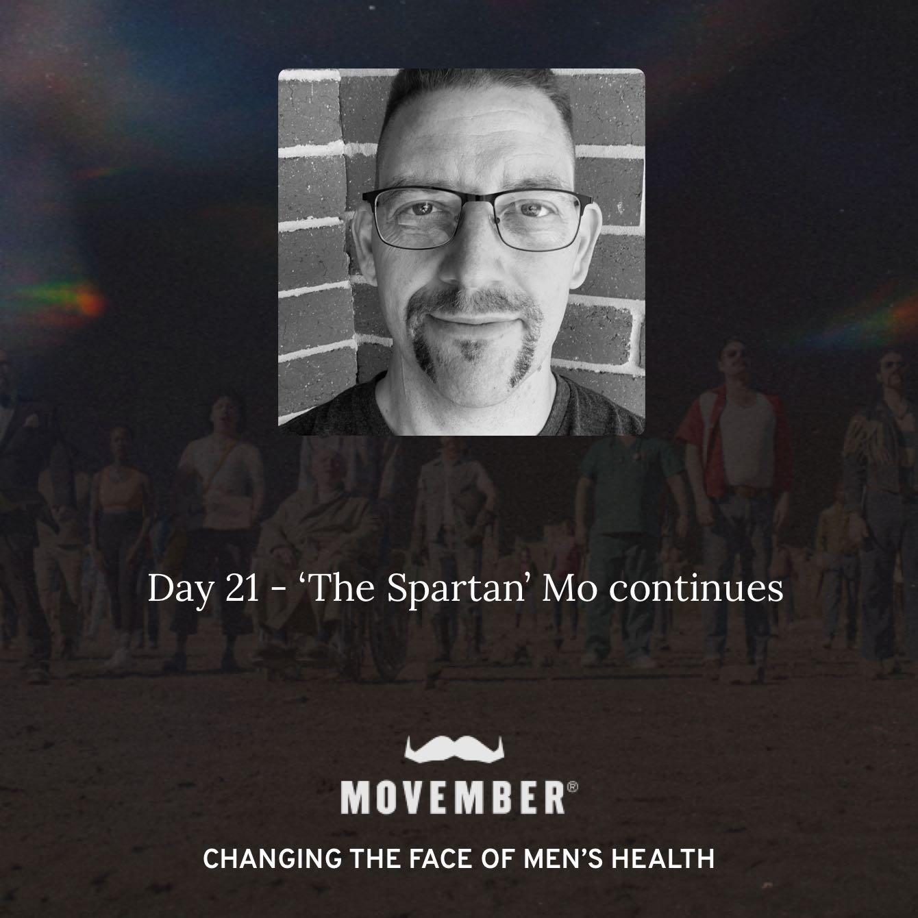 I'm moving 60km this Movember for the 60 men we lose each hour of every day.