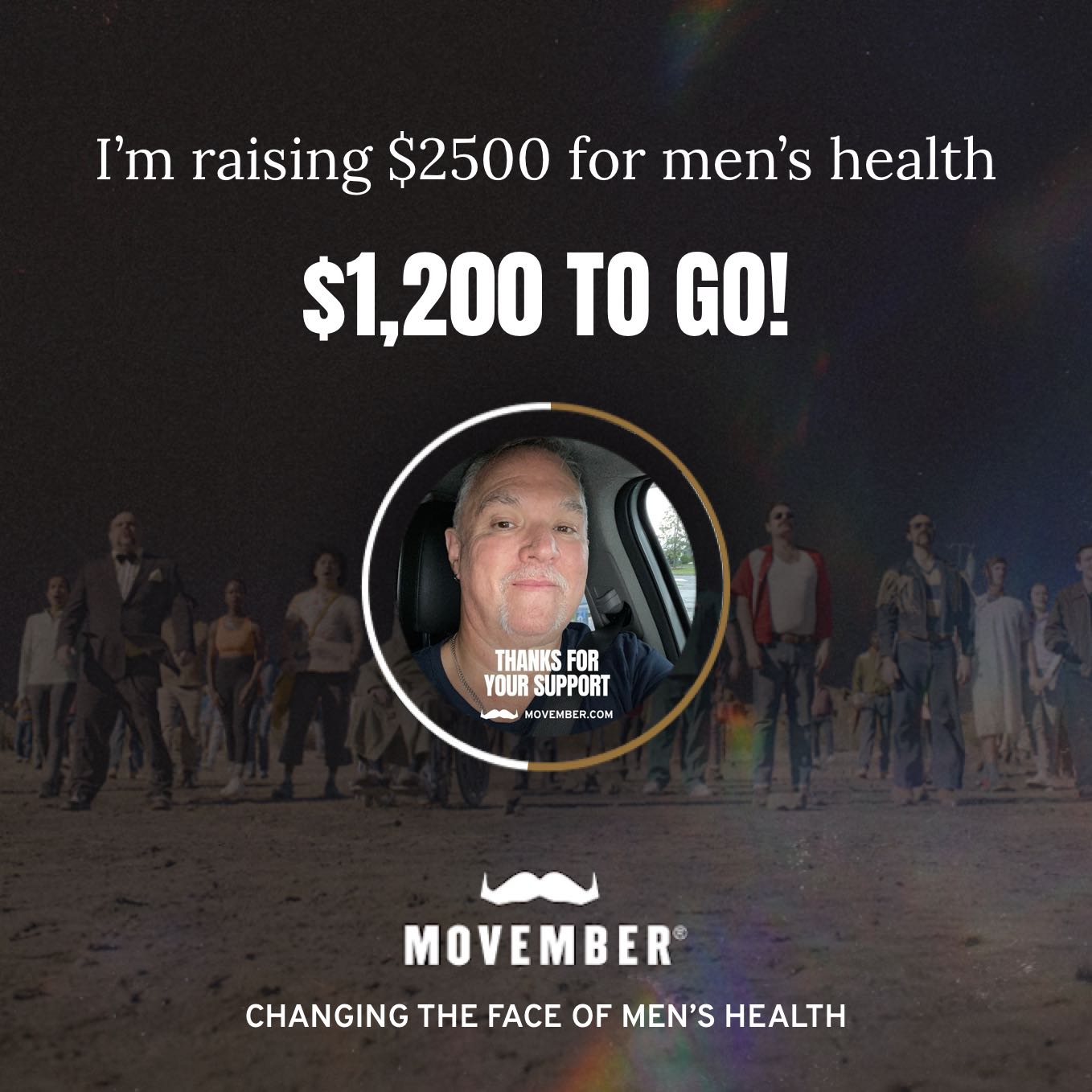 Globally, the rate of suicide is alarmingly high, particularly in men. Too many men are ‘toughing it out’, keeping their feelings to themselves and struggling in silence. The Movember Foundation is aiming to reduce the rate of male suicide by 25% by 2030, and I want to help them get there. Help me stop men dying too young.