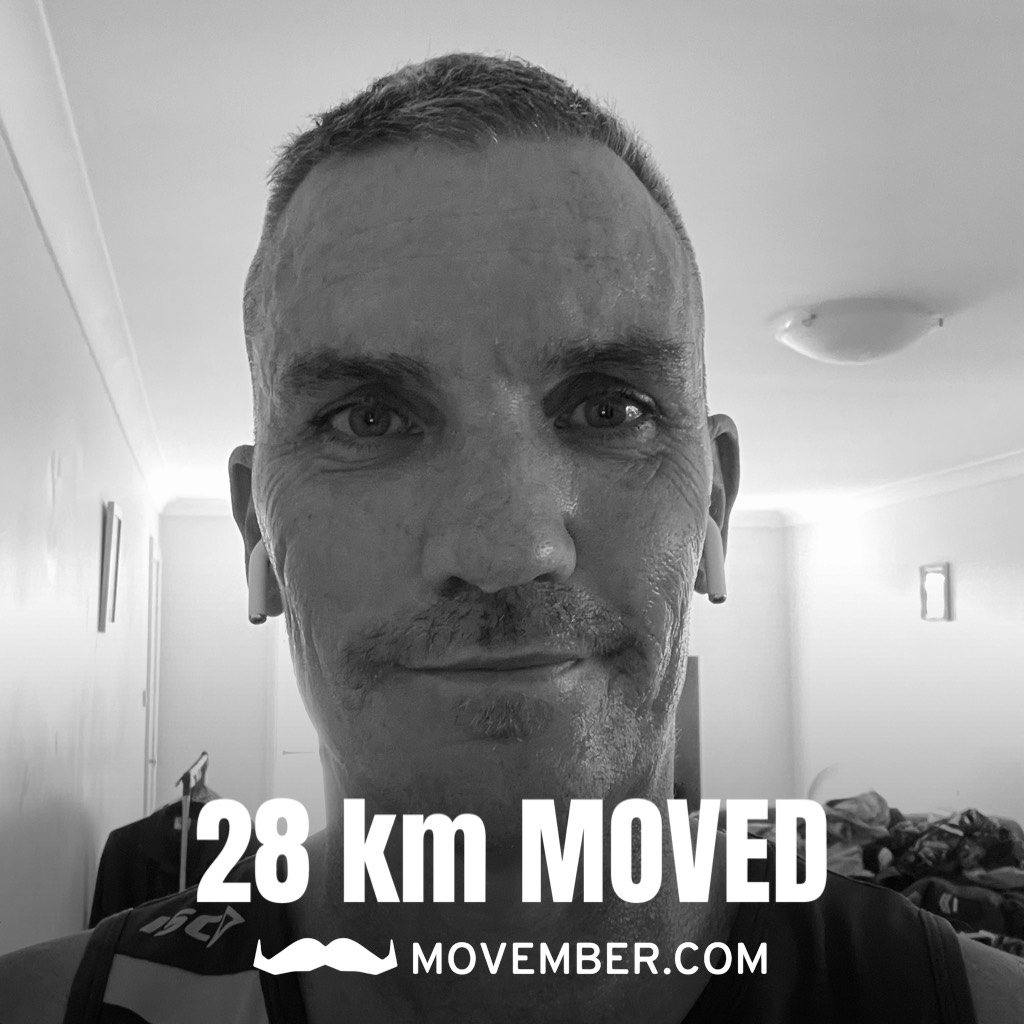 I'm moving 100km this Movember for the 60 men we lose each hour of every day. Us blokes are just important as the women in our lives and should get the help needed as well so I’m hoping to do my bit